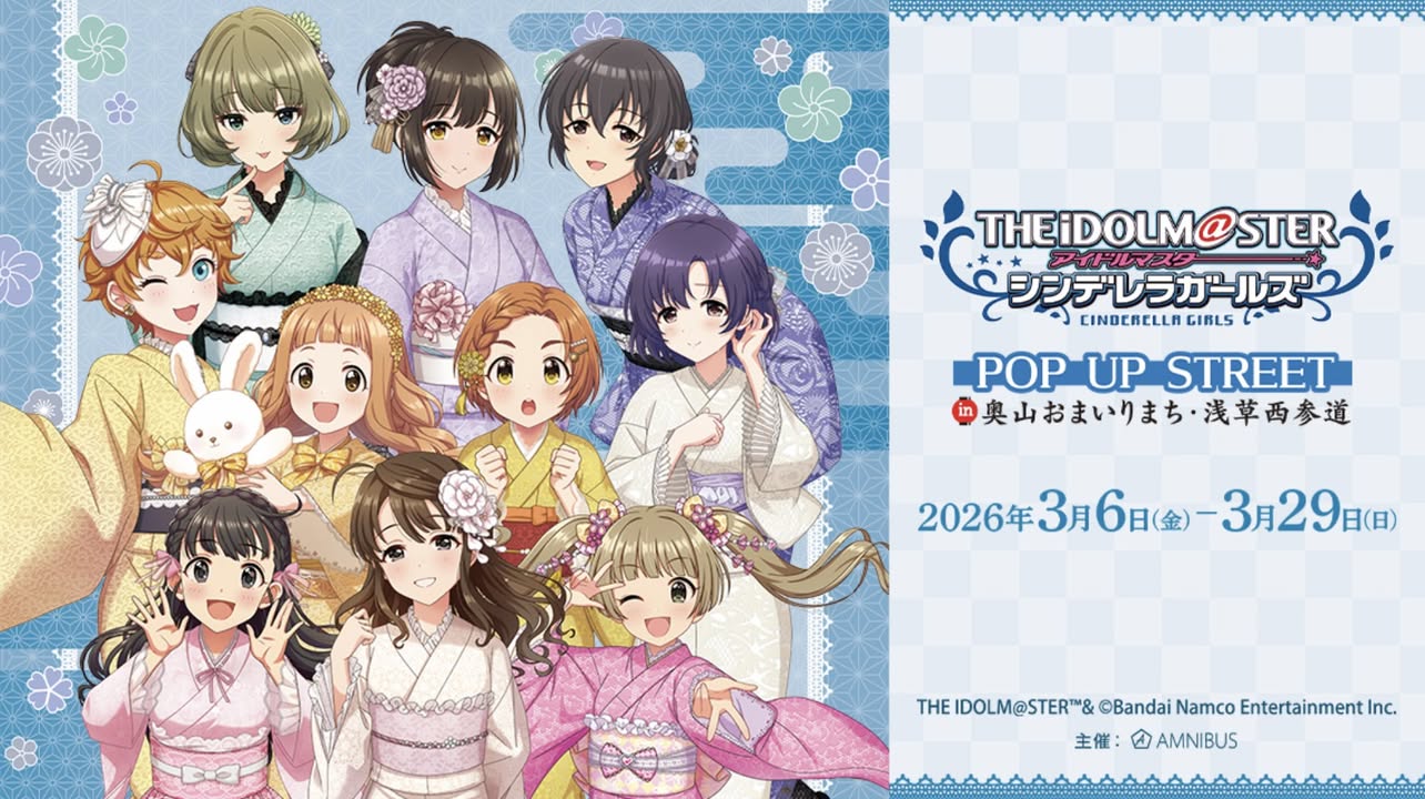 026年3月6日(金)より、浅草の奥山おまいりまち商店街、浅草西参道商店街にて「『アイドルマスター シンデレラガールズ』 POP UP STREET in 奥山おまいりまち・浅草西参道」が開催されます。